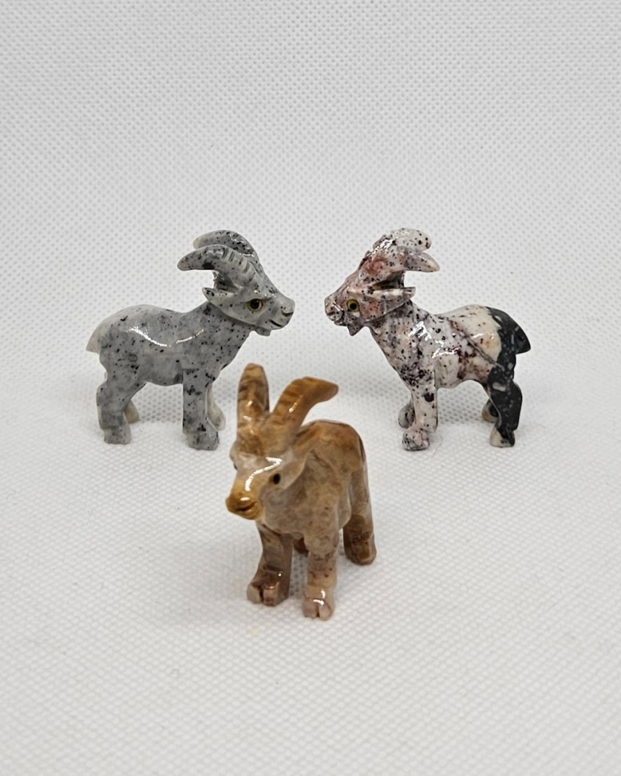 Figurka kozlíka vybroušená z peruánského kalcitu, o velikosti cca 3,5 cm.