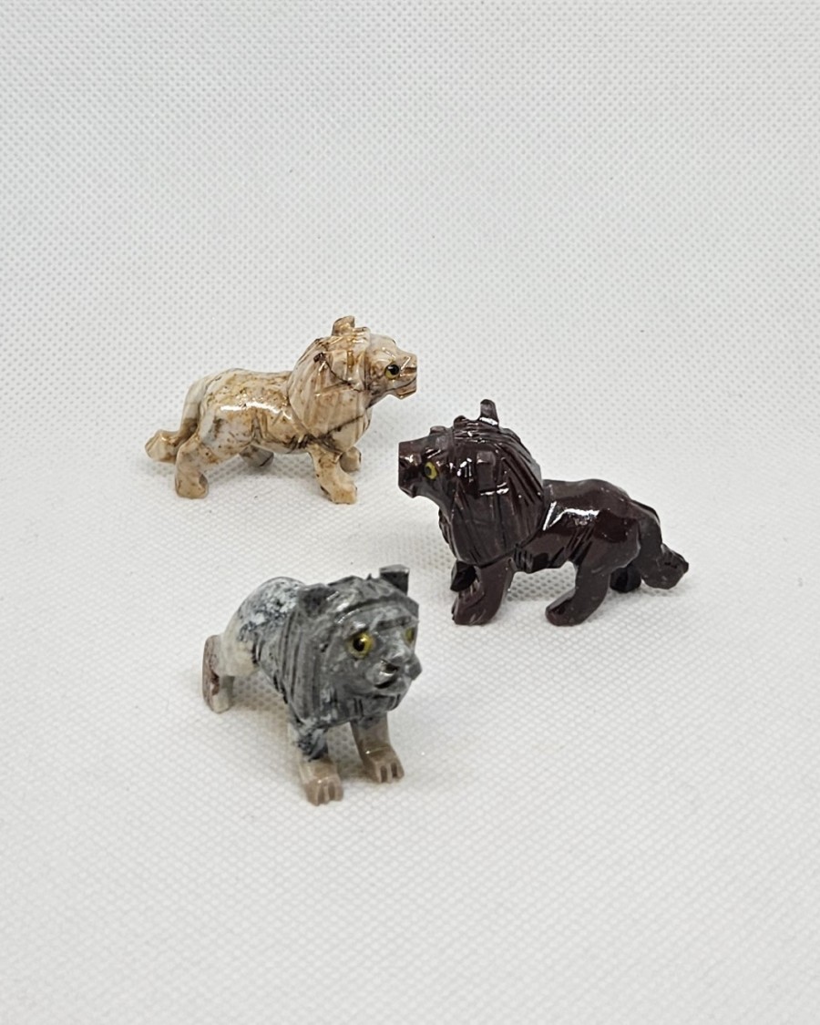 Figurka lva vybroušená z peruánského kalcitu, o velikosti cca 3,5 cm.