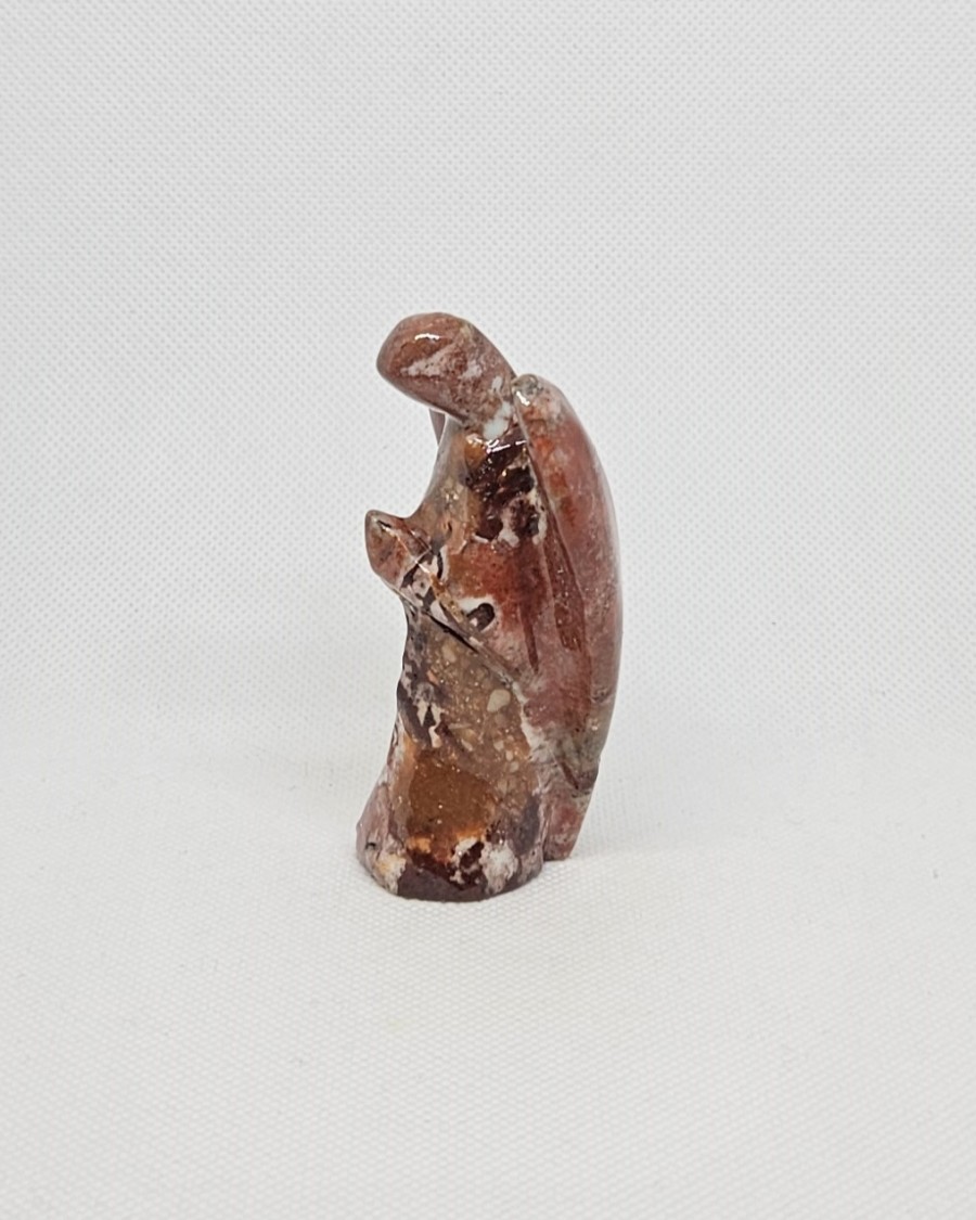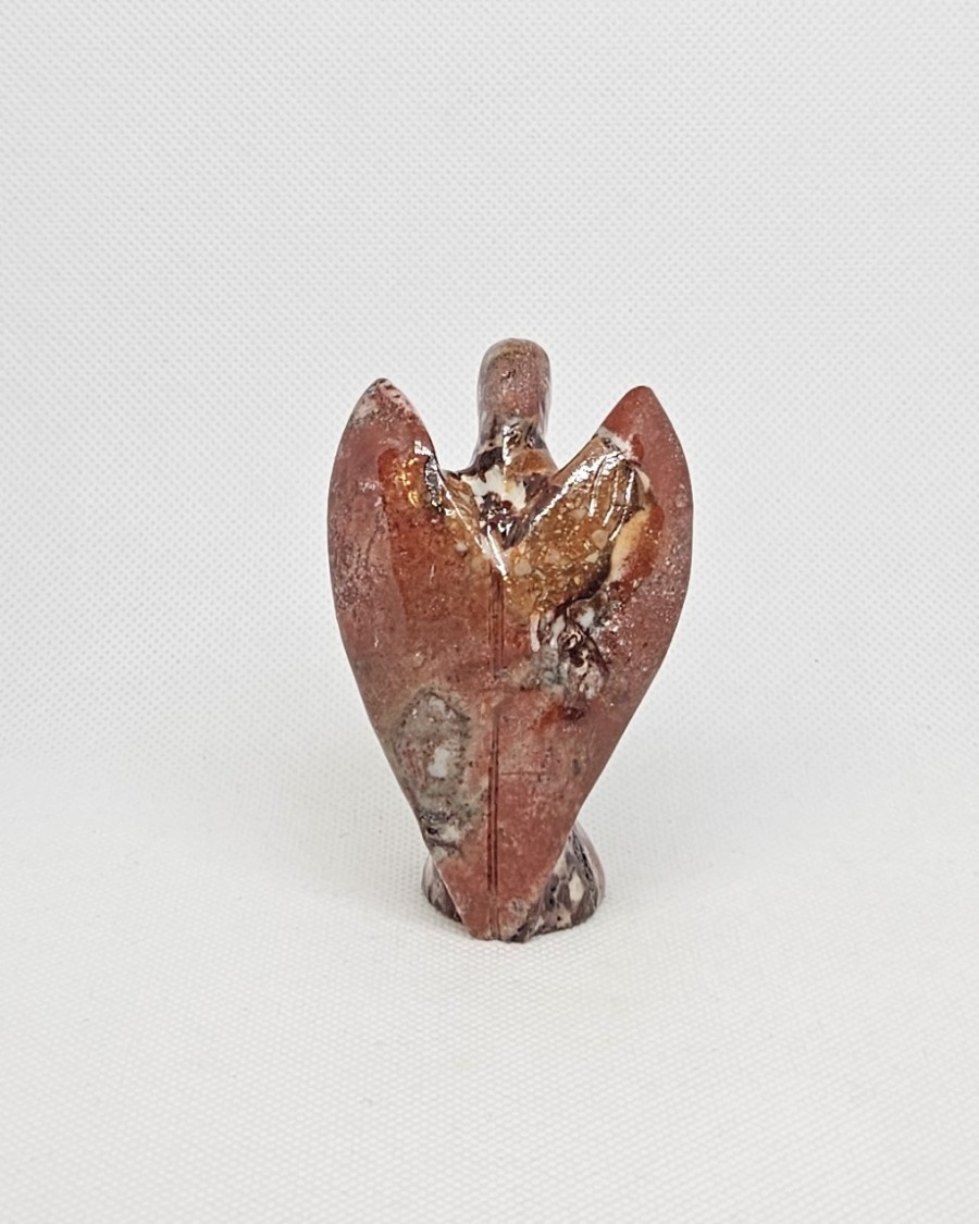 Figurka anděla vybroušená z peruánského kalcitu, o velikosti cca 7,5 cm, hmotnost cca 100 g.