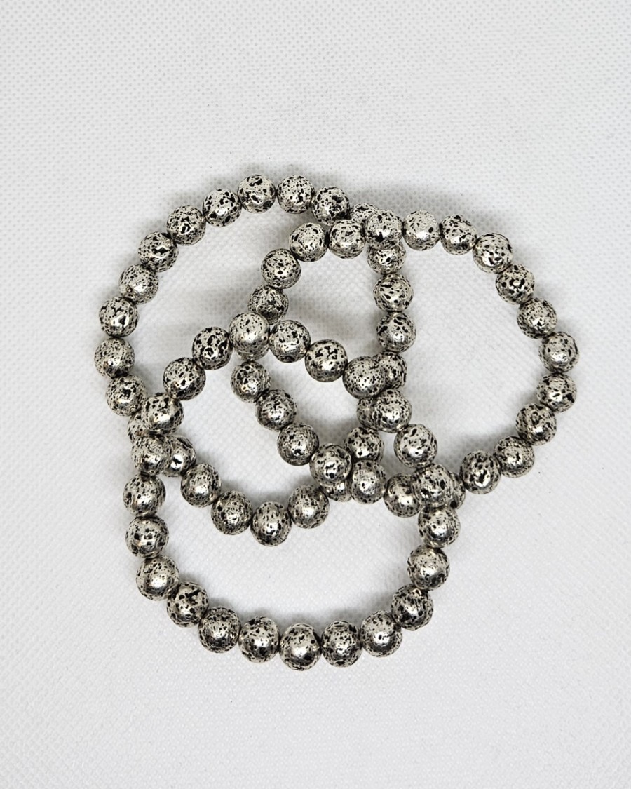 Náramek je tvořen kuličkami lávového kamene o průměru cca 8 mm, kuličky byla pro větší efekt pozlaceny