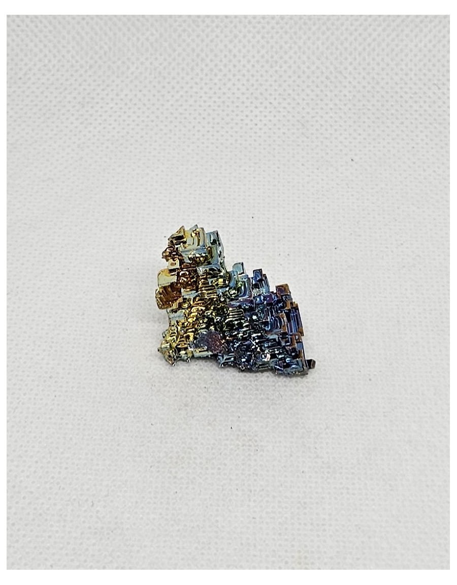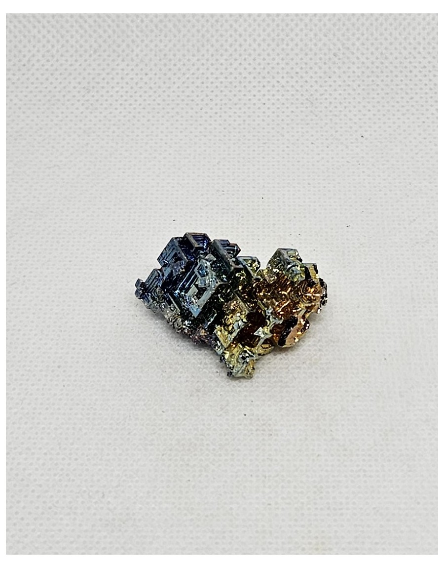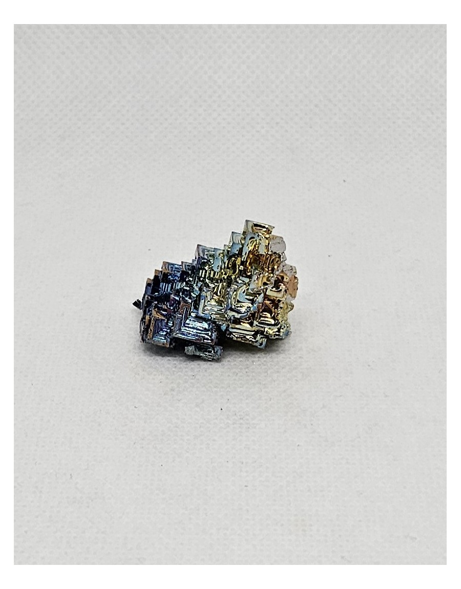 Bismut je vzácný a těžký kovový prvek, vyskytující se v přírodě. Nabízený sběratelský vzorek je uměle vykrystalizován, vyznačuje