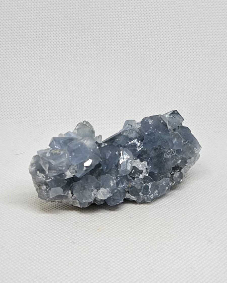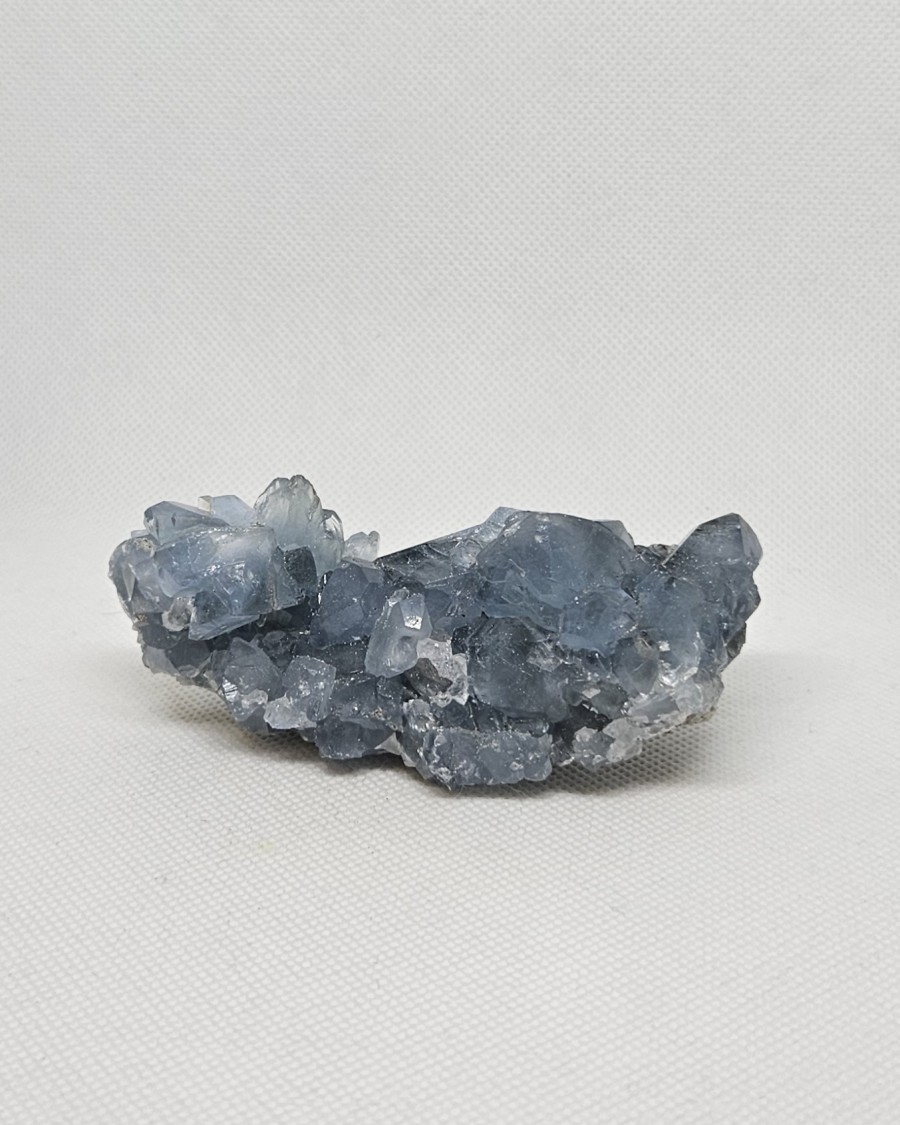 Drúza lesklých krystalů celestinu, hmotnost 218 g, velikost vzorku 10 x 5 x 4 cm.