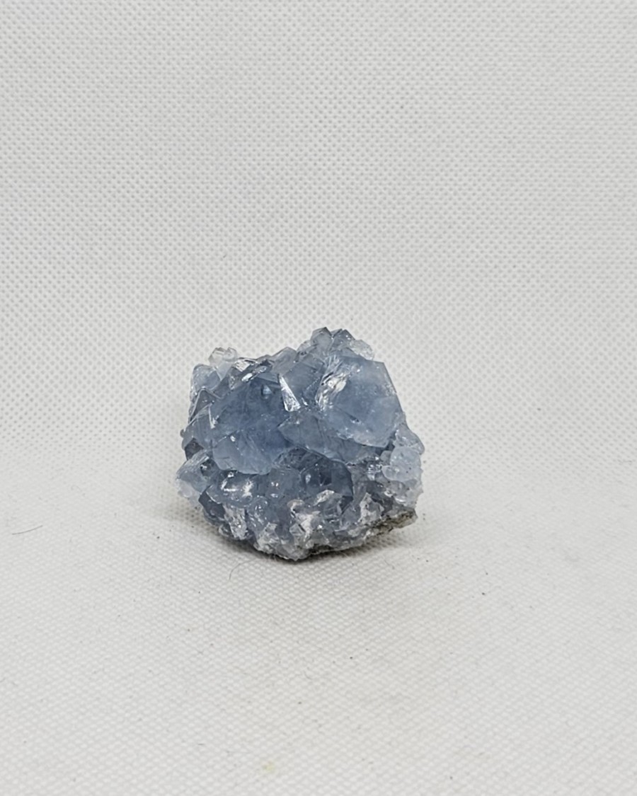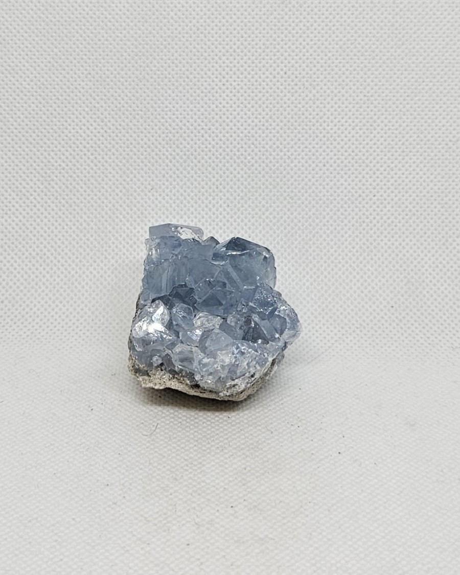 Drúza lesklých krystalů celestinu, hmotnost 115 g, velikost vzorku 5 x 5 x 4 cm.