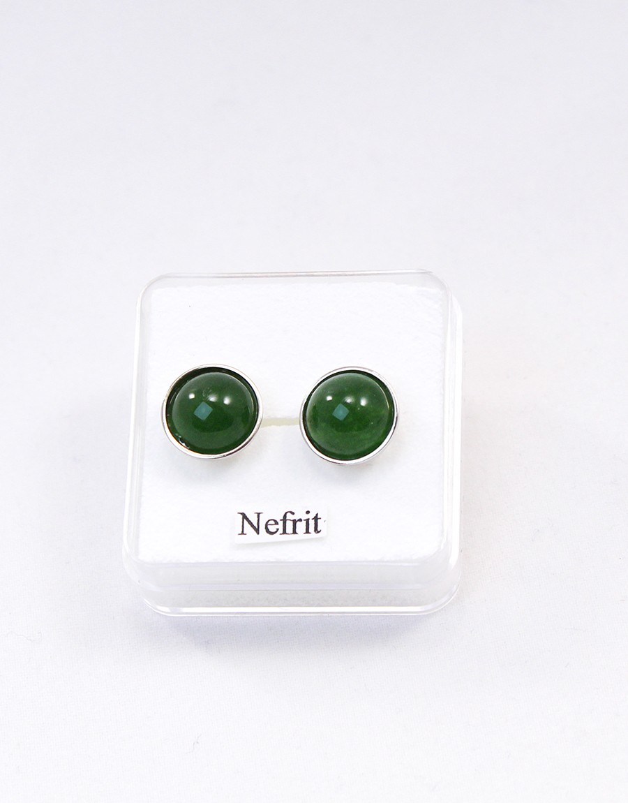 Náušnice tvoří kovové lůžko s vlepenou půlkuličkou nefritu.