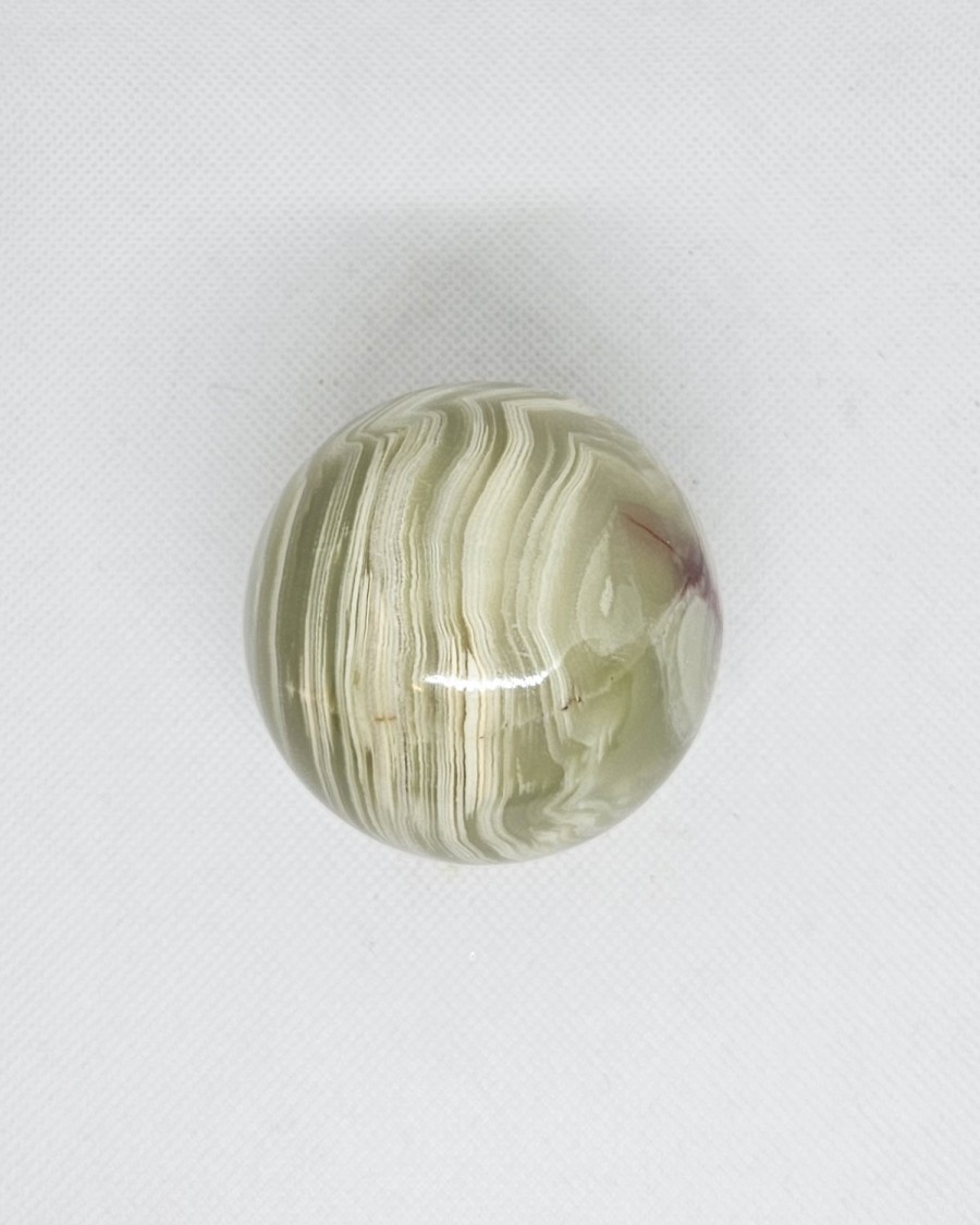 Koule je vybroušená z pákistánského zelenohnědého onyxu a každá je originálním, a nejenom dekorativním kouskem.