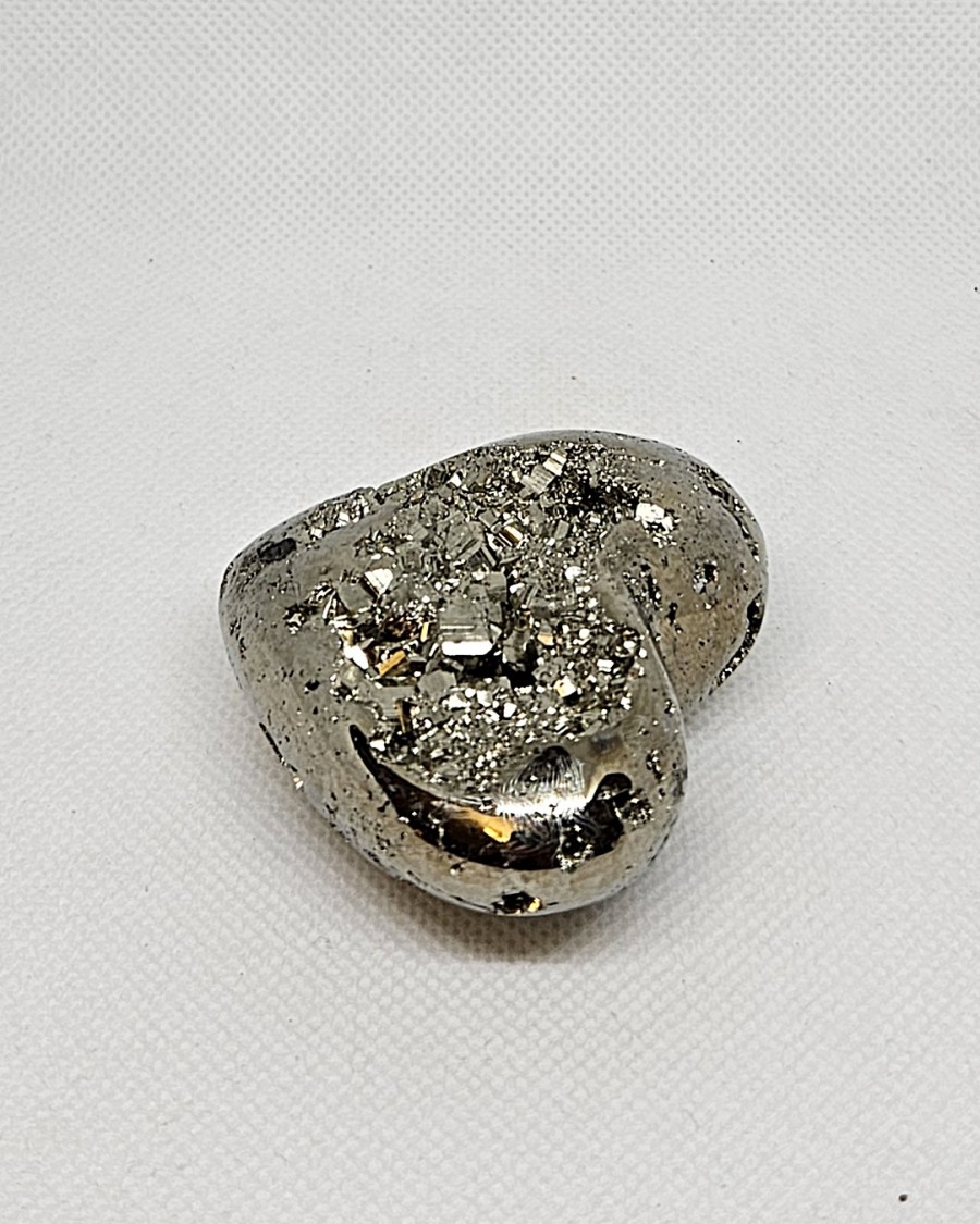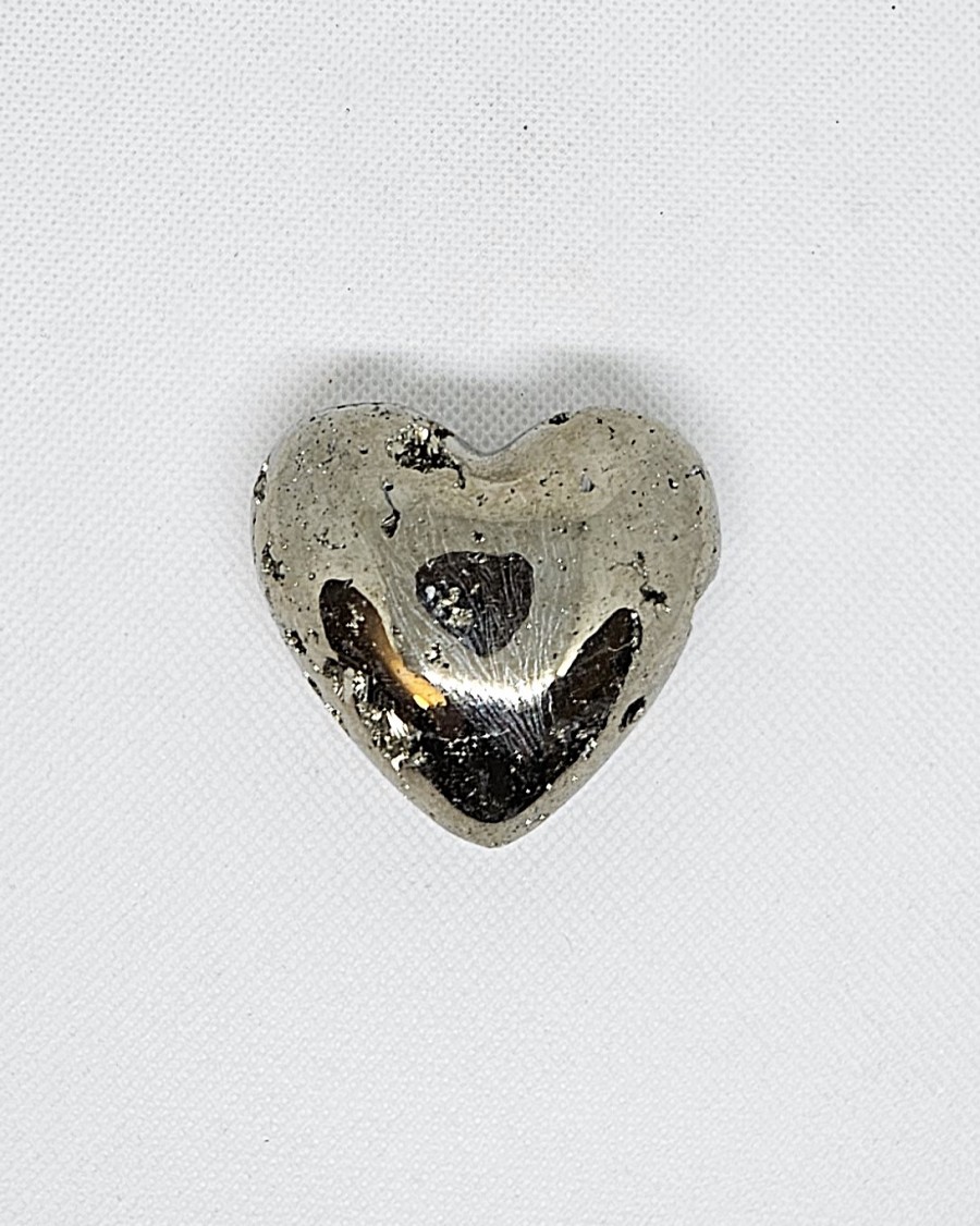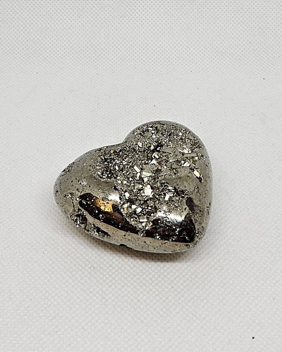 Srdce je vybroušené z peruánského pyritu a každé je originálním, vysoce dekorativním kouskem. Není vybroušené do dokonalé hladkosti, na horní straně jsou patrné krásné
