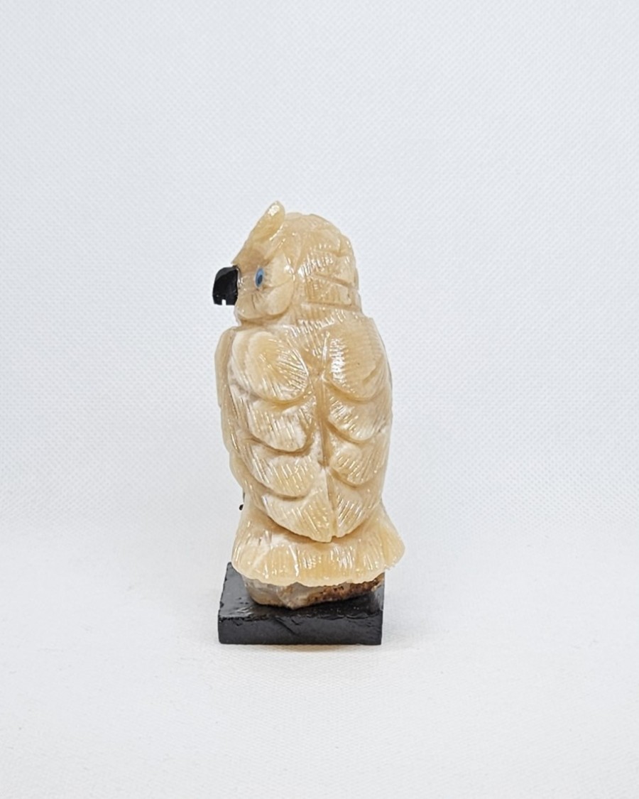 Figurka sovy na nízkém podstavci, výška cca 10 cm.