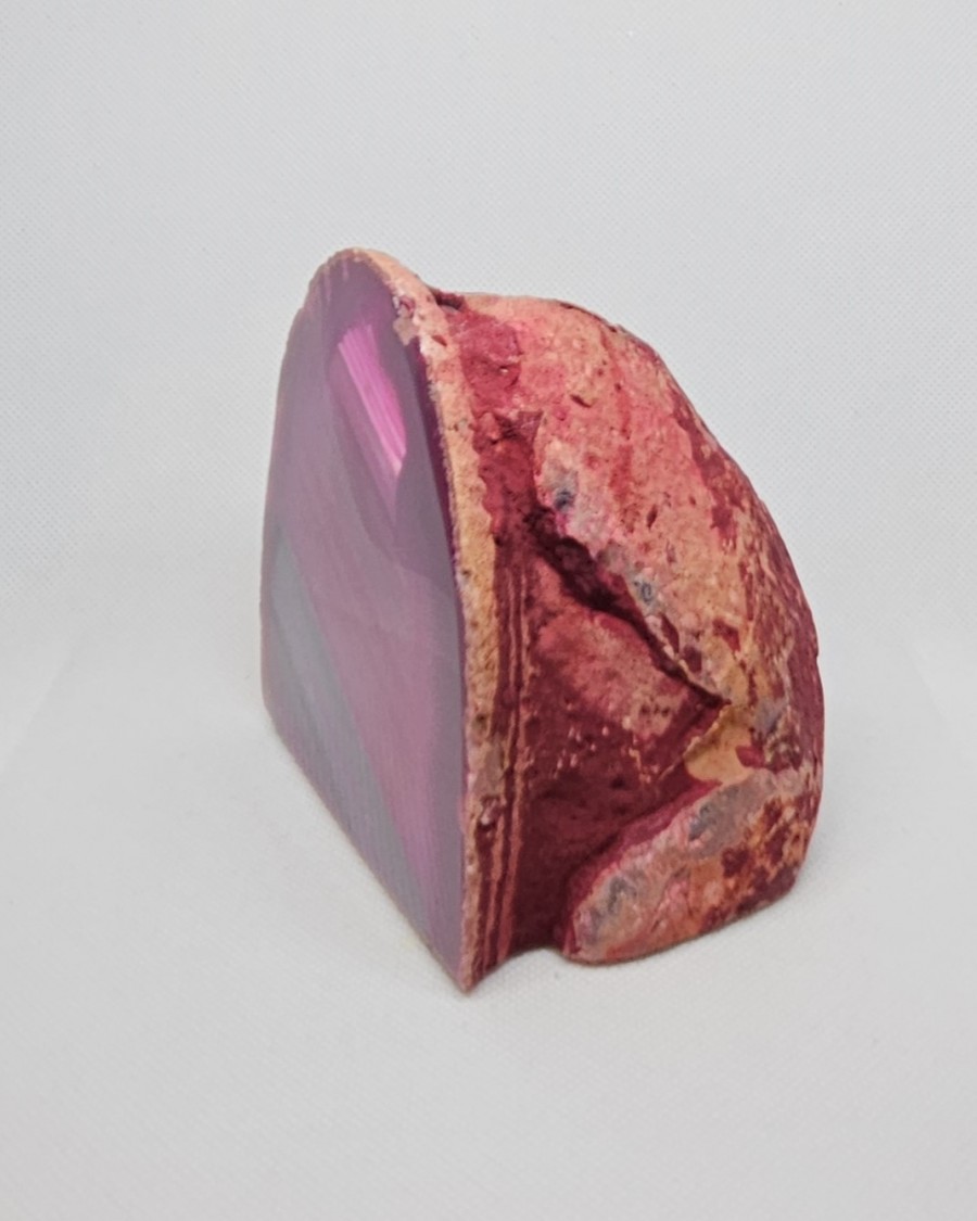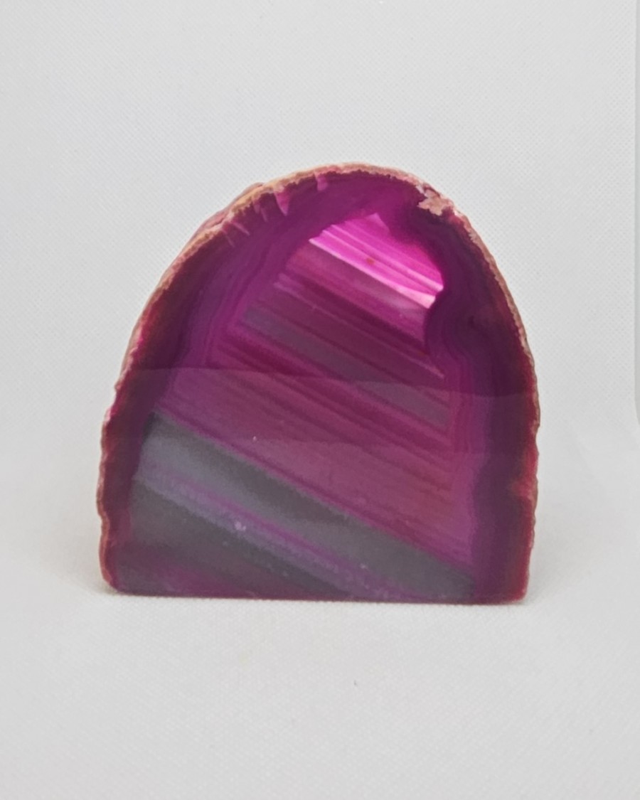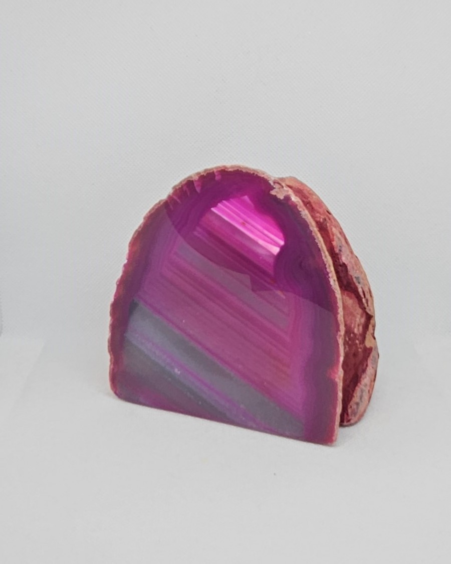 Krásný achát uměle zbarvený do odstínů růžové, s navrtanou dutinou pro čajovou svíčku, spodní část je pro ochranu povrchu nábytku opatřena čtyřmi prakticky neviditelnými