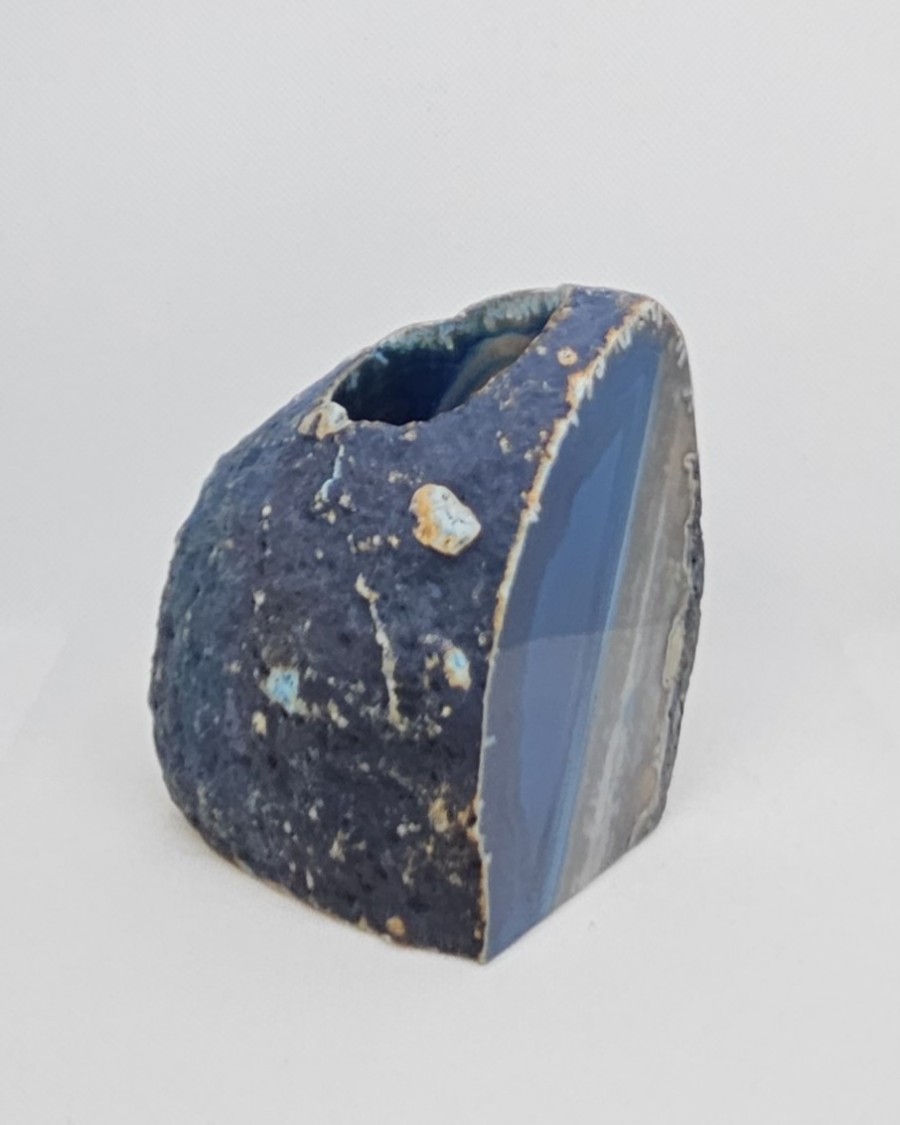 Krásný achát uměle zbarvený do odstínů tyrkysově modré barvy, s navrtanou dutinou pro čajovou svíčku,